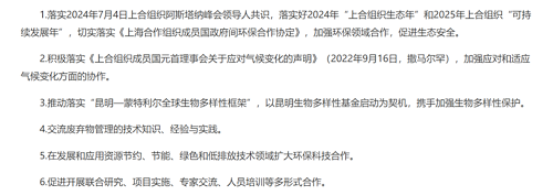 7月8日,以“攜手綠色發(fā)展,推動(dòng)人與自然和諧共生”為主題的上海合作組織國家綠色發(fā)展論壇在山東省青島市開幕。本次論壇是中方作為輪值主席國舉辦的首場高級(jí)別活動(dòng),旨在推動(dòng)上合組織國家在綠色能源、綠色產(chǎn)業(yè)、應(yīng)對(duì)氣候變化等領(lǐng)域深度合作。會(huì)上發(fā)布“共建綠色發(fā)展伙伴關(guān)系,共促可持續(xù)發(fā)展”倡議。(據(jù)中國政府網(wǎng)、生態(tài)環(huán)境部)