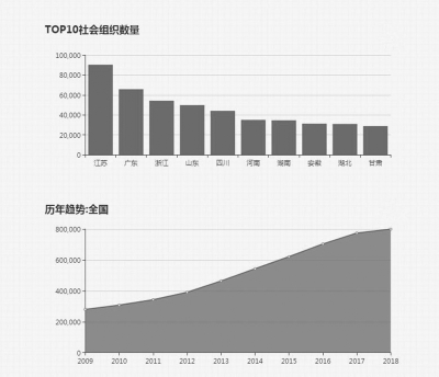 其中,基金會6322個,比上年增加10.68%;社會團體373194個,比上年增加7.75%;民辦非企業(yè)單位421567個,比上年增加9.65%。
