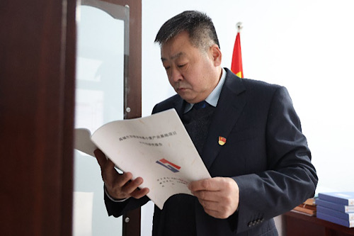 近三年的時間里,張世明成功籌集幫扶資金30萬元,為村里建設(shè)了占地面積7200平方米的糧食晾曬場以及糧食儲備庫和冷鏈庫,集中解決了全村糧食晾曬和儲存問題。張世明為村里引進(jìn)種植黑小麥,建設(shè)黑小麥?zhǔn)ッ娣奂庸ぼ囬g,注冊成立“莒滿倉”面粉品牌,讓黑小麥面粉成為李富苑屯村的“土特產(chǎn)”。張世明了解到村里大鵬種植戶擴(kuò)大生產(chǎn)需要資金,他積極聯(lián)系,主動上門了解農(nóng)戶資金需求,為30余戶村民辦理興農(nóng)快貸,為村民授信額度累計367.37萬元,解決農(nóng)民融資難題。這一件件落地的實(shí)在事,村民看在了眼里,更記在了心里。