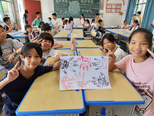 (廣東外語外貿(mào)大學(xué)-七星協(xié)勵(lì)小隊(duì)讓孩子們在心理知識(shí)科普課堂上畫出“情緒五指圖”)