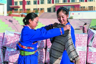 2019年10月16日,囊謙下起了冰雹,寒意初現(xiàn),‘中國宋慶齡基金會·優(yōu)衣庫專項(xiàng)基金’衣物捐贈儀式在青海省囊謙縣第一民族中學(xué)舉行。優(yōu)衣庫捐贈了價(jià)值約600萬元的7萬余件愛心衣物,為青海地區(qū)的脫貧攻堅(jiān)盡己所能,希望通過一件件衣服承載的愛心,為打通貧困攻堅(jiān)最后一公里注入力量。”
