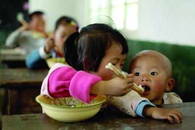 2011年4月27日,免費午餐在湖南新晃縣大坪坡村小啟動,彭曉雨帶著弟弟來了,并給他喂飯