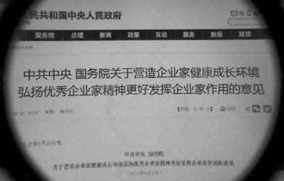 《中共中央國務(wù)院關(guān)于營造企業(yè)家健康成長環(huán)境弘揚(yáng)優(yōu)秀企業(yè)家精神更好發(fā)揮企業(yè)家作用的意見》,這份題目全長41個(gè)字的文件明確指出,企業(yè)家是經(jīng)濟(jì)活動(dòng)的重要主體,更勾勒出新時(shí)期優(yōu)秀企業(yè)家精神的核心內(nèi)涵:弘揚(yáng)企業(yè)家愛國敬業(yè)遵紀(jì)守法艱苦奮斗的精神;弘揚(yáng)企業(yè)家創(chuàng)新發(fā)展專注品質(zhì)追求卓越的精神;弘揚(yáng)企業(yè)家履行責(zé)任敢于擔(dān)當(dāng)服務(wù)社會(huì)的精神。