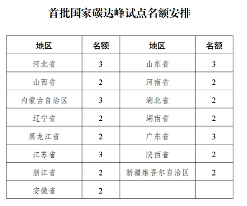 首批15個(gè)省份35個(gè)試點(diǎn)!《國家碳達(dá)峰試點(diǎn)建設(shè)方案》發(fā)布