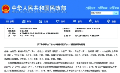 11月2日,民政部網(wǎng)站公布了中央12部門聯(lián)合出臺(tái)的《關(guān)于加強(qiáng)社會(huì)工作專業(yè)崗位開發(fā)與人才激勵(lì)保障的意見(jiàn)》。《意見(jiàn)》針對(duì)社工發(fā)展提出了許多新的說(shuō)法與要求: