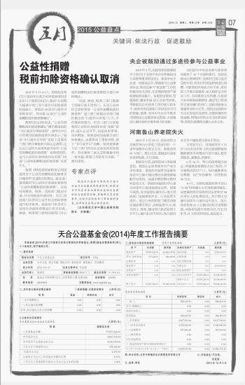 天合公益基金會(huì)(2014)年度工作報(bào)告摘要