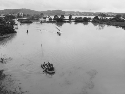 連日來,洪水肆虐瀟湘大地,湖南省永州市零陵區(qū)富家橋鎮(zhèn)漁池頭村,交通、電力與通訊隨之阻斷,幾乎成為一座孤島,有關(guān)部門迅速展開救援。這是7月14日,救援人員在用皮劃艇轉(zhuǎn)移受困群眾(無人機(jī)拍攝)。