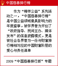 | 9月29日,為國(guó)慶60周年獻(xiàn)禮,“影響中華公益的60位慈善家”人物名單在京揭曉。本次“影響中華公益的60位慈善家”活動(dòng)是由中國(guó)慈善排行榜辦公室籌劃,公益時(shí)報(bào)、鳳凰網(wǎng)同步發(fā)布的,旨在通過(guò)展示共和國(guó)60年來(lái)對(duì)慈善捐贈(zèng)事業(yè)發(fā)展作出重大貢獻(xiàn)的企業(yè)家和社會(huì)名人,記錄中國(guó)民間慈善捐贈(zèng)發(fā)展和社會(huì)愛心力量壯大的感動(dòng)歷程,以此來(lái)樹立慈善榜樣,弘揚(yáng)奉獻(xiàn)精神,傳播公益理念。 |