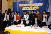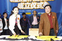 | 10月28日,囊括眾多演藝明星的明星羽毛球隊(duì)正式改名為公益明星羽毛球俱樂(lè)部,并在釣魚(yú)臺(tái)舉行了隆重的成立儀式。明星羽毛球隊(duì)自2003年成立以來(lái),已發(fā)展到近百人的陣容。中國(guó)社會(huì)工作協(xié)會(huì)副會(huì)長(zhǎng)、《公益時(shí)報(bào)》社社長(zhǎng)劉京擔(dān)任主席、劉曉慶擔(dān)任執(zhí)行主席。 |